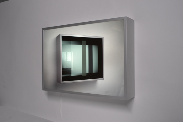Each twist series consists of three or four light boxes representing themselves as computer graphics. The simulated light boxes display abstract compositions of structures playing with illusionary spaces and surfaces.